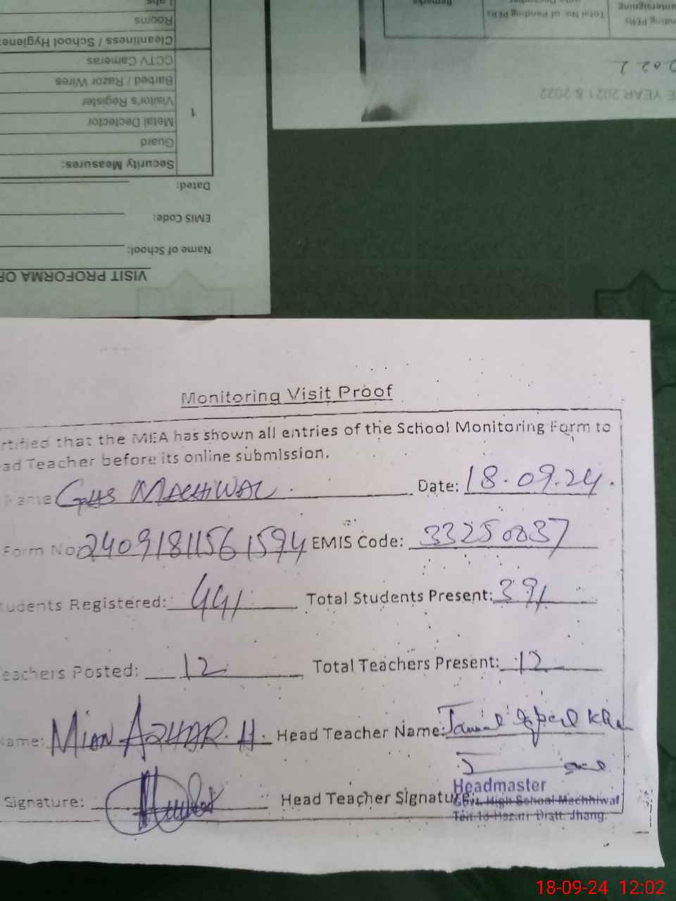 | EMIS Code: 33250037 | Name of School: GHS MACHI WAL | |||