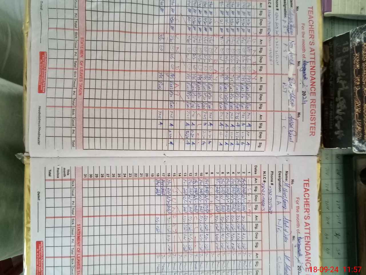 | CNIC | Full Name | Designation | R/C | Absence During Last Calender Month |