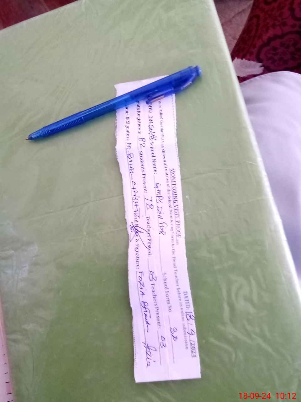 | Attendance Register | Head Teacher | MEA with School | Visit Proof |