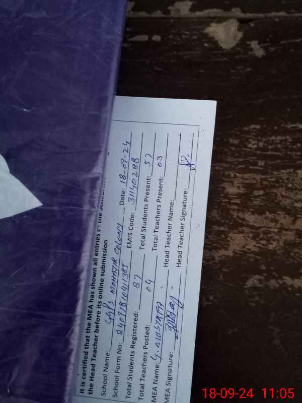 | Certified that this School was Inspected by the Undersigned MEA/DMO Today and the Information Stated Above is as Per Record. | |||||