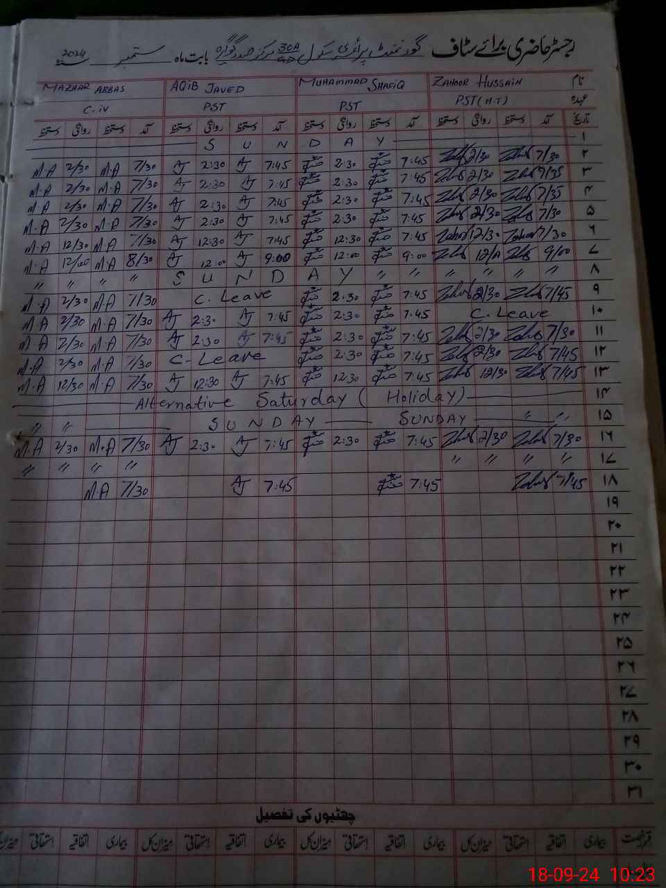 | CNIC | Full Name | Designation | R/C | Absence During Last Calender Month |