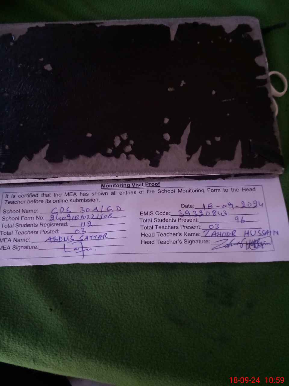 | Attendance Register | Head Teacher | MEA with School | Visit Proof |