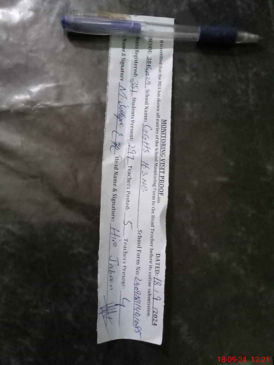 | Name: Hi**** Ja**** Designation: (School Headmaster's/Headmistress's) SSE Phone/Cell Number: 03**** |