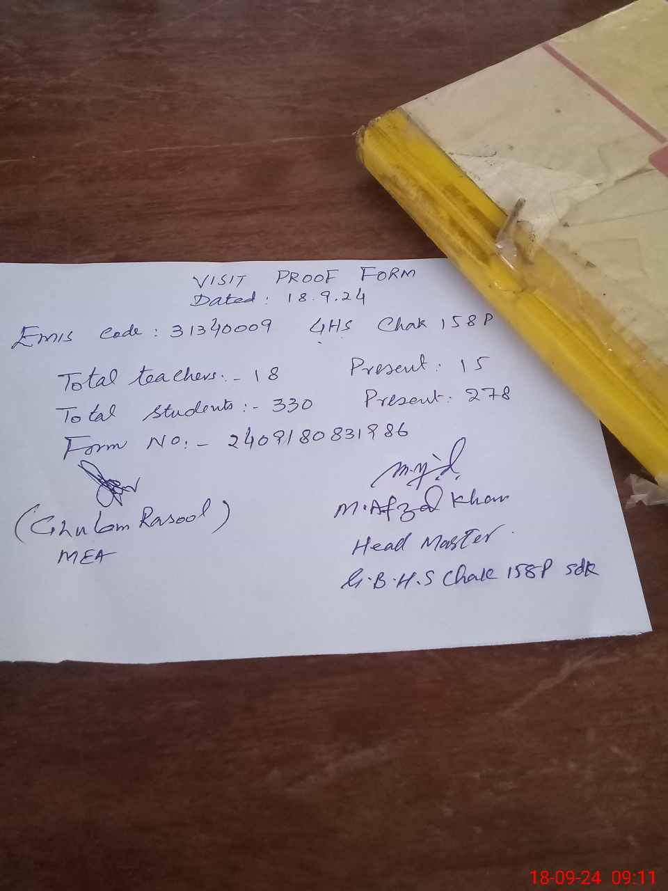 | EMIS Code: 31340009 | Name of School: GHS CHAK NO. 158/P | |||