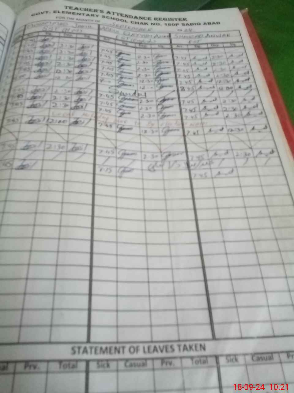 | Leave | Duty | Absent | Maternity | Medical | Ex- Pak |