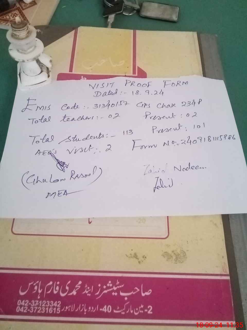 | EMIS Code: 31340157 | Name of School: GPS CHAK NO 234-P | |||