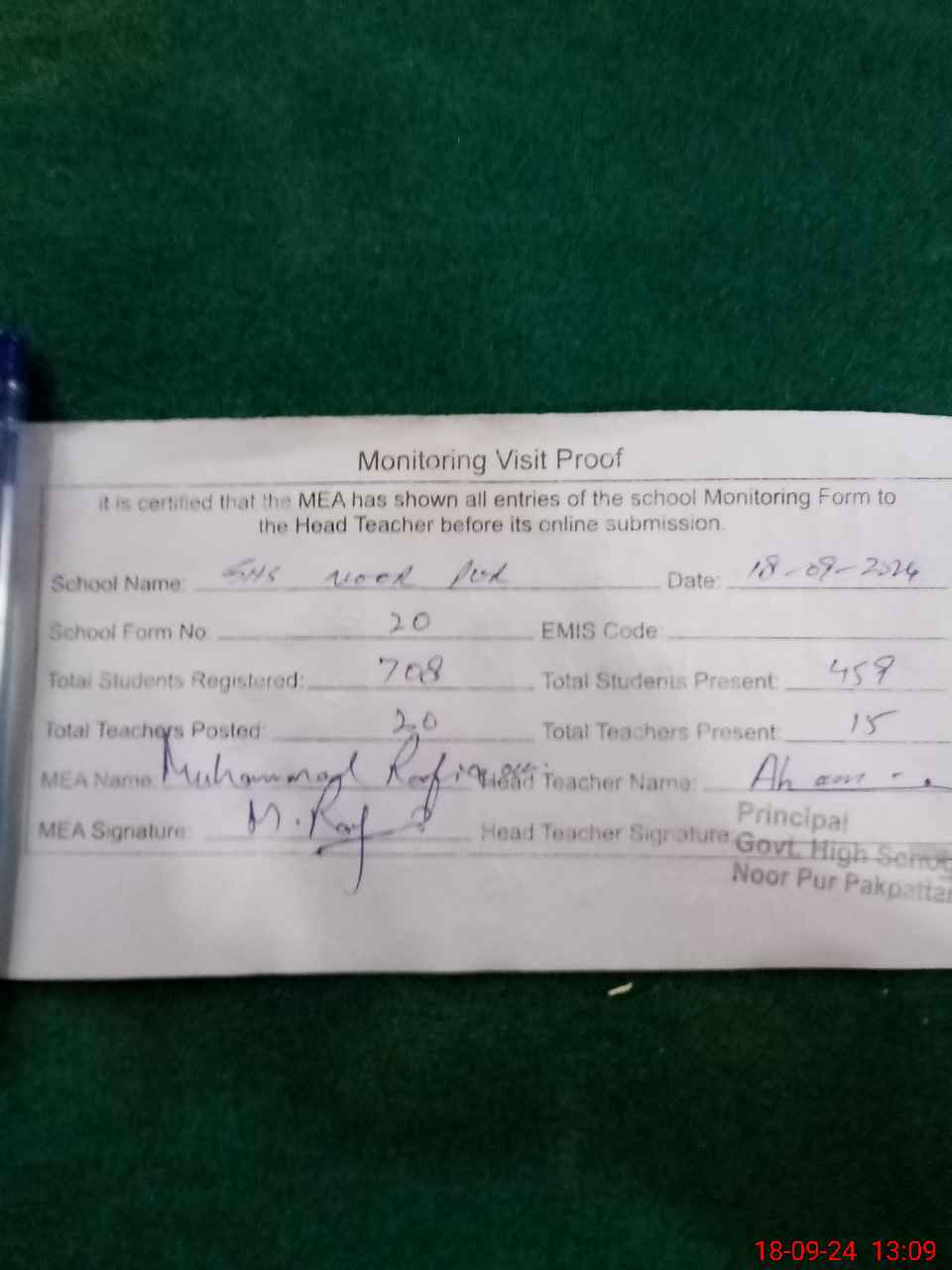 | EMIS Code: 39210014 | Name of School: GHS NOOR PUR PAKPATTAN | |||