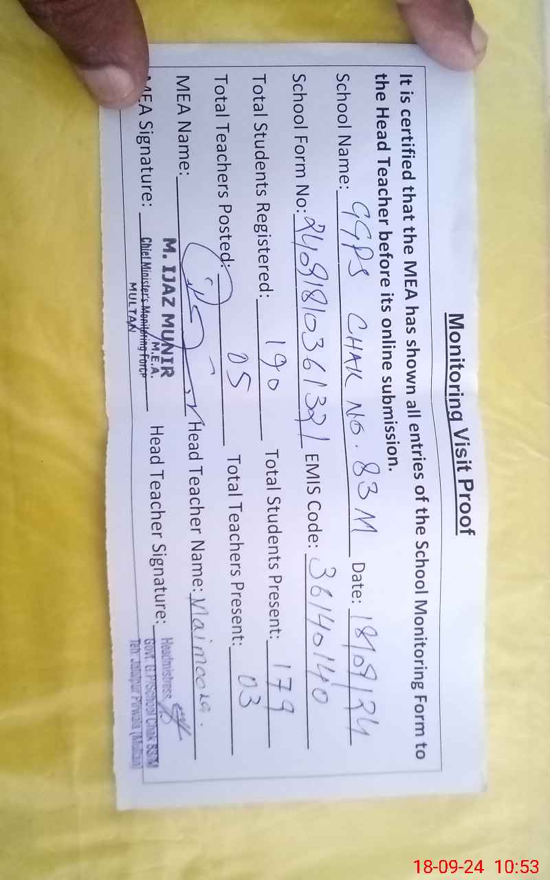 | EMIS Code: 36140140 | Name of School: GGPS CHAK NO. 83/M | |||