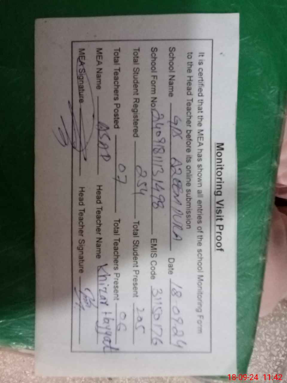 | EMIS Code: 31150176 | Name of School: GPS AZEEM PURA | |||