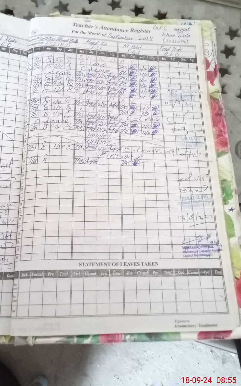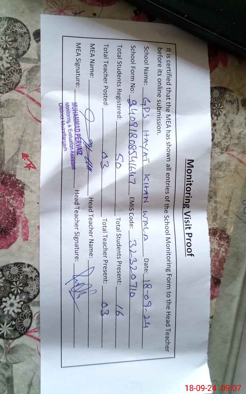 | EMIS Code: 32320710 | Name of School: GPS HAYAT KHAN WALA | |||
