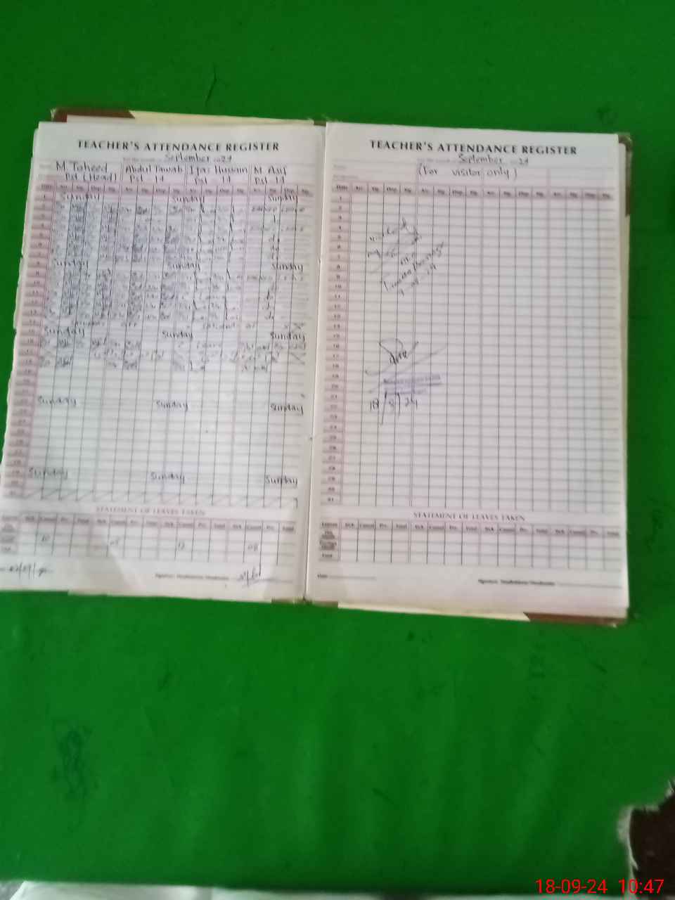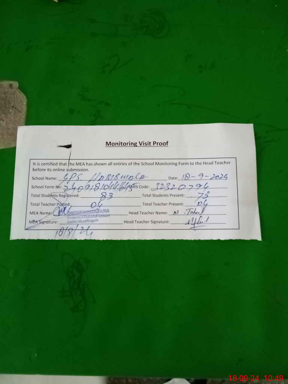| Attendance Register | Head Teacher | MEA with School | Visit Proof |