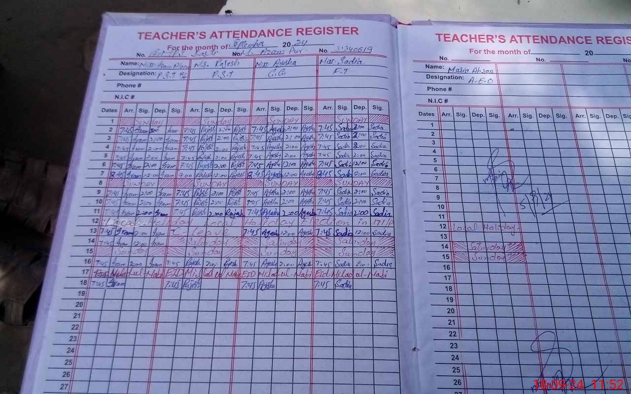 | Name: Ir**** Al**** Designation: (School Headmaster's/Headmistress's) PST Phone/Cell Number: 03**** |