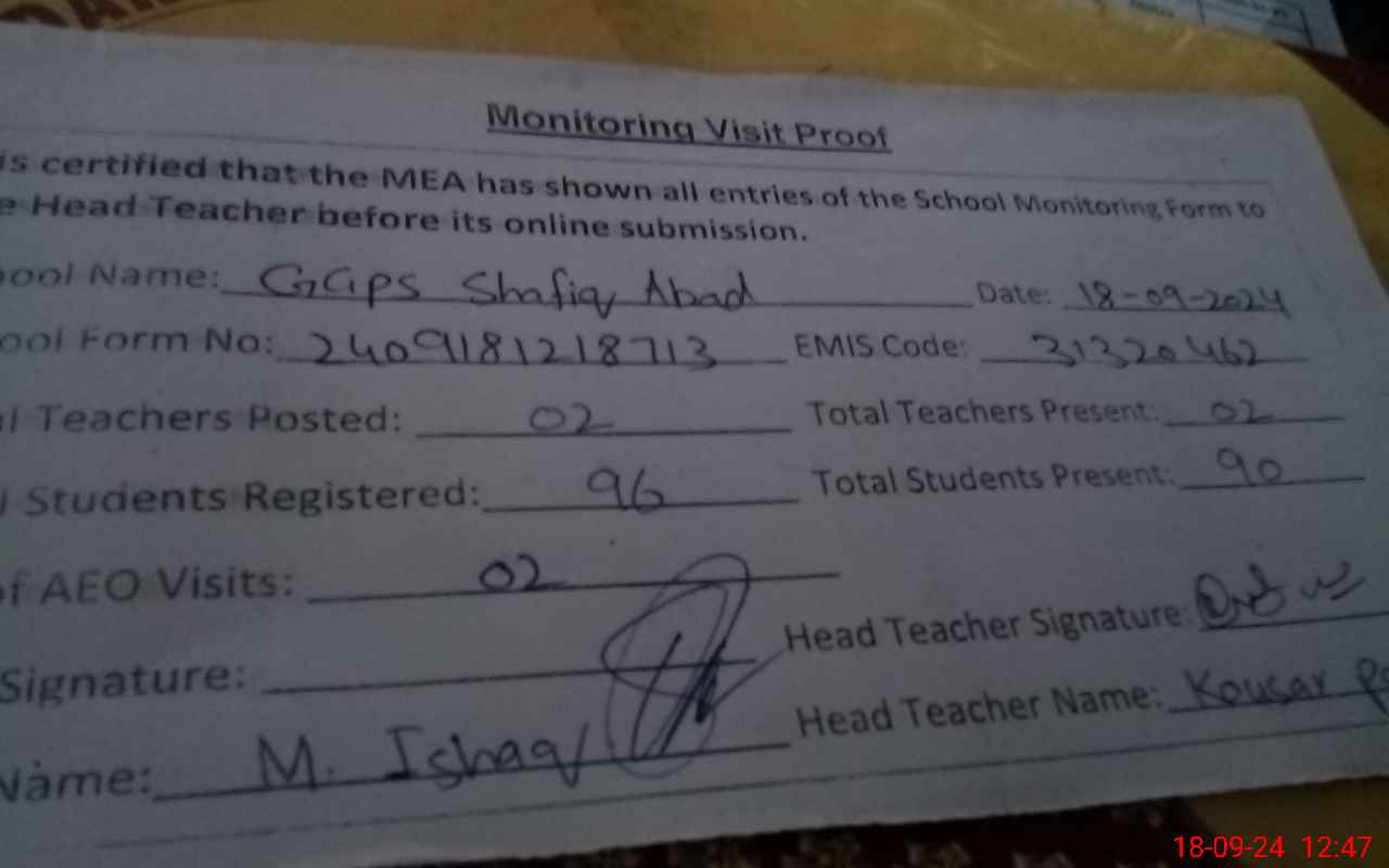| EMIS Code: 31320462 | Name of School: GGPS SHAFIQ ABAD | |||