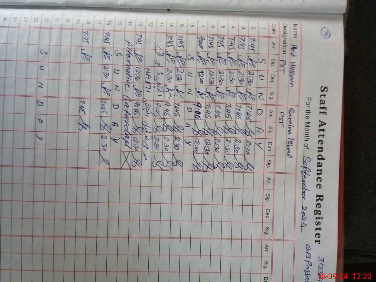 | Name: AB**** HU**** Designation: (School Headmaster's/Headmistress's) PST/PTC/JV Phone/Cell Number: 03**** |