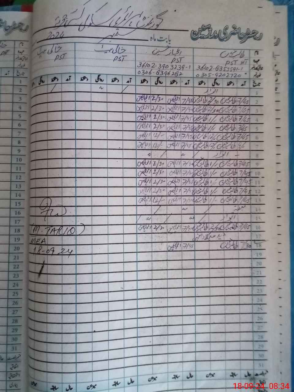 | Monitoring Date: 18-09-2024 | Start Time: 18-09-2024 08:30 AM | End Time: 18-09-2024 09:10 AM | Name of MEA: MU**** TA**** | |