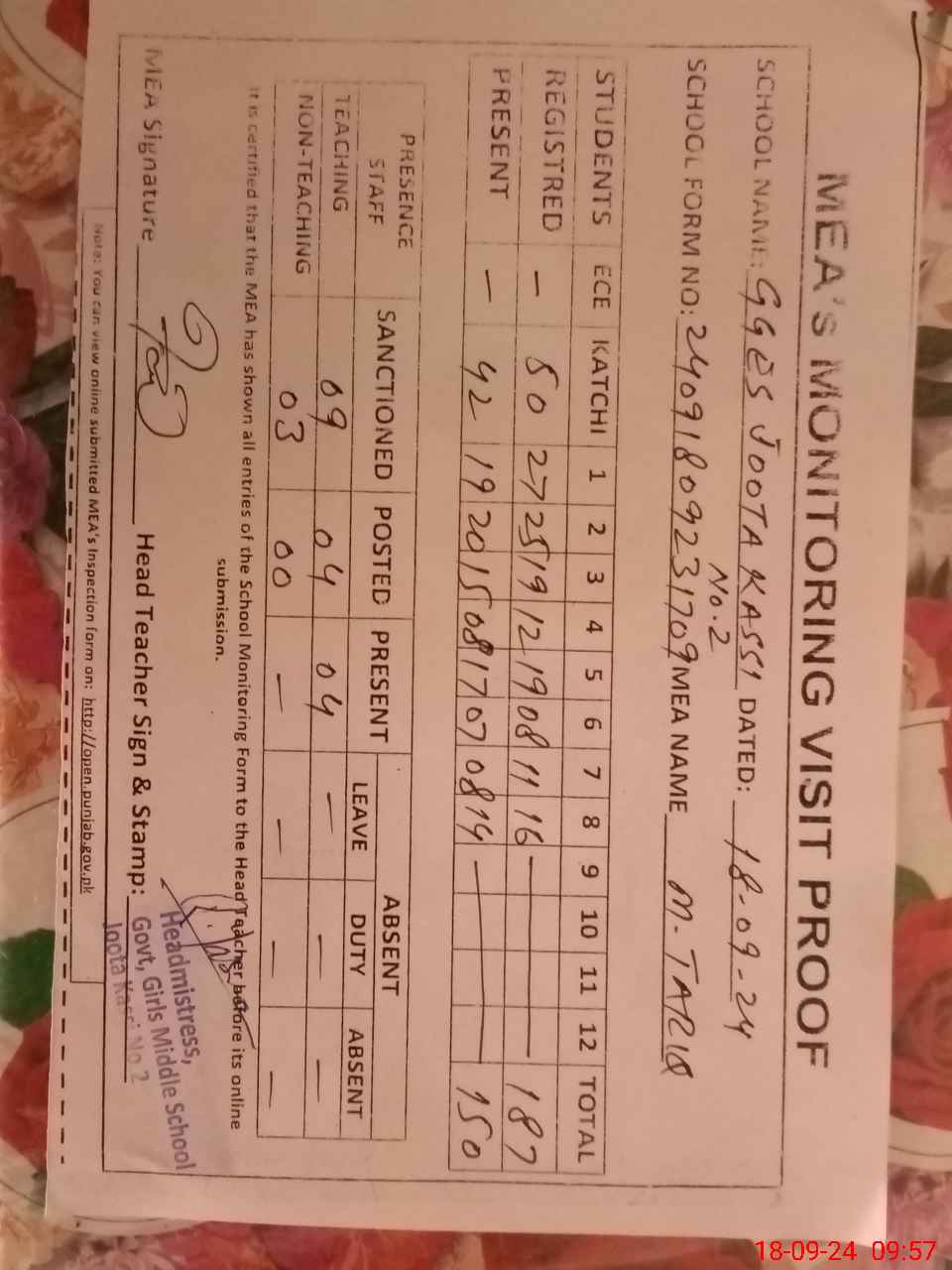 | EMIS Code: 36410152 | Name of School: GGES JOOTA KASSI NO.2, NAWAN SHEHR | |||