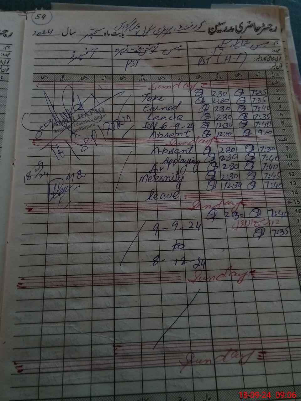 | 35**** | Kh**** Ba**** Za**** | PST | Regular | 13 | 0 | 0 | 13 | 0 | 0 | 0 | 0 | 0 | Maternity |