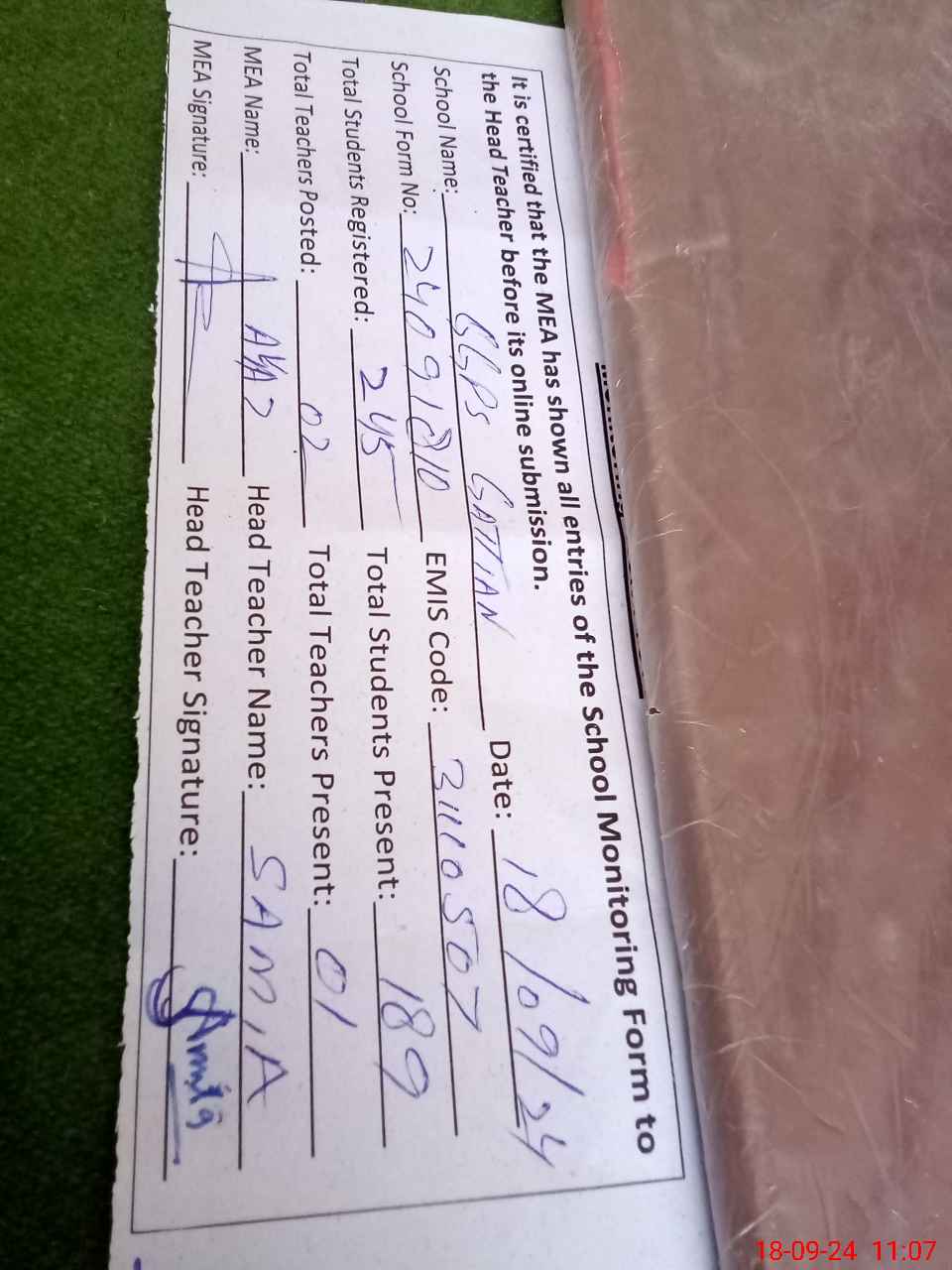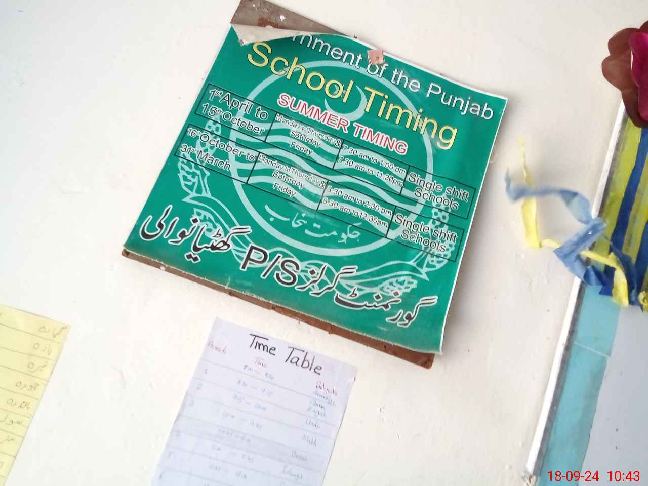 | EMIS Code: 31110508 | Name of School: GGPS GHATTIAN WALI | |||