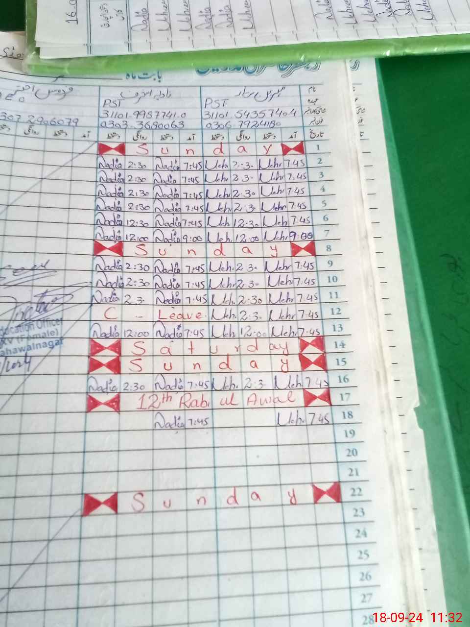 | CNIC | Full Name | Designation | R/C | Absence During Last Calender Month |