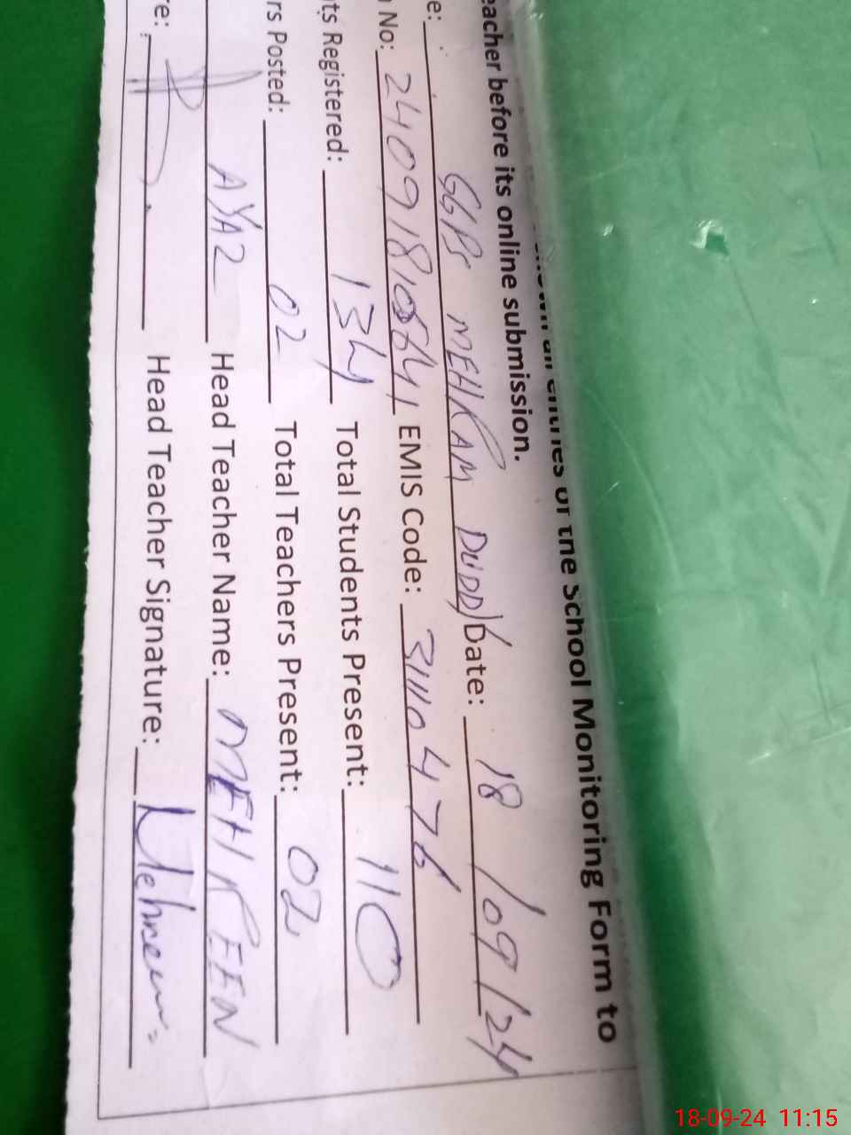| Name: ME**** SA**** Designation: (School Headmaster's/Headmistress's) Pst Phone/Cell Number: 03**** |