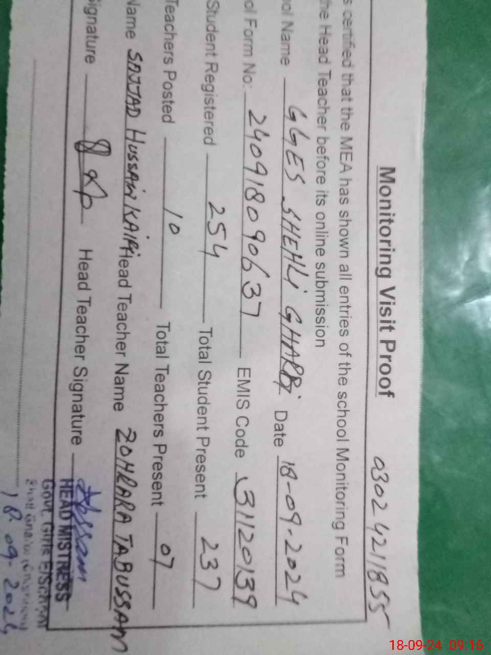 | EMIS Code: 31120139 | Name of School: GGES SHELI GHARBI | |||