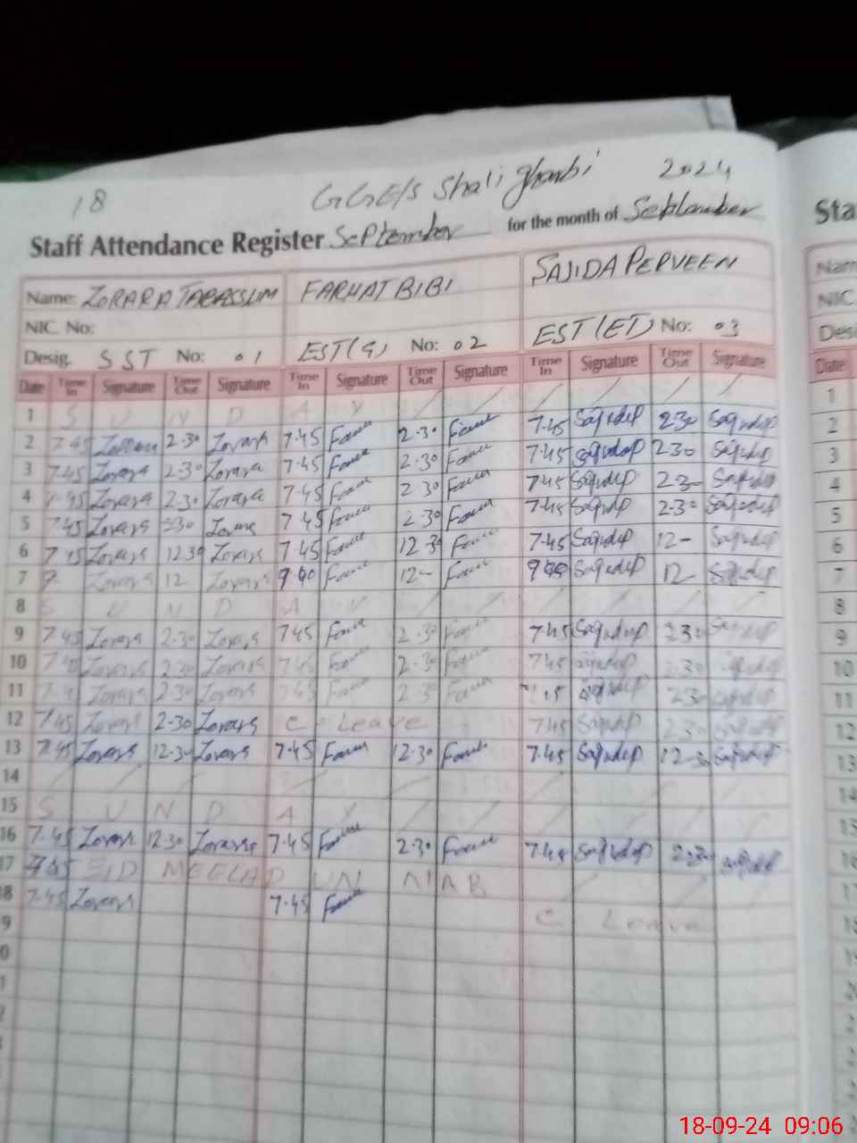 | Name: ZO**** TA**** Designation: (School Headmaster's/Headmistress's) SST GENERAL Phone/Cell Number: 03**** |