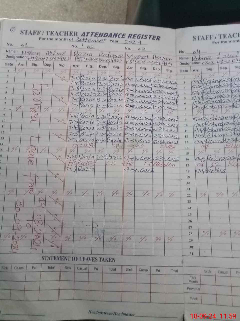 | Leave | Duty | Absent | Maternity | Medical | Ex- Pak |