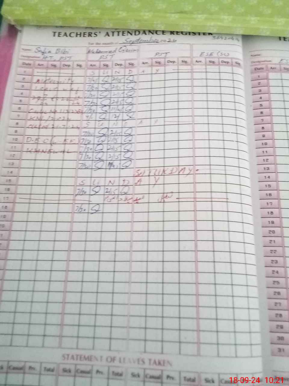 | 36**** | Sa**** Bi**** | PST | Regular | 31 | 0 | 0 | 31 | 0 | 0 | 0 | 0 | 0 | Maternity |