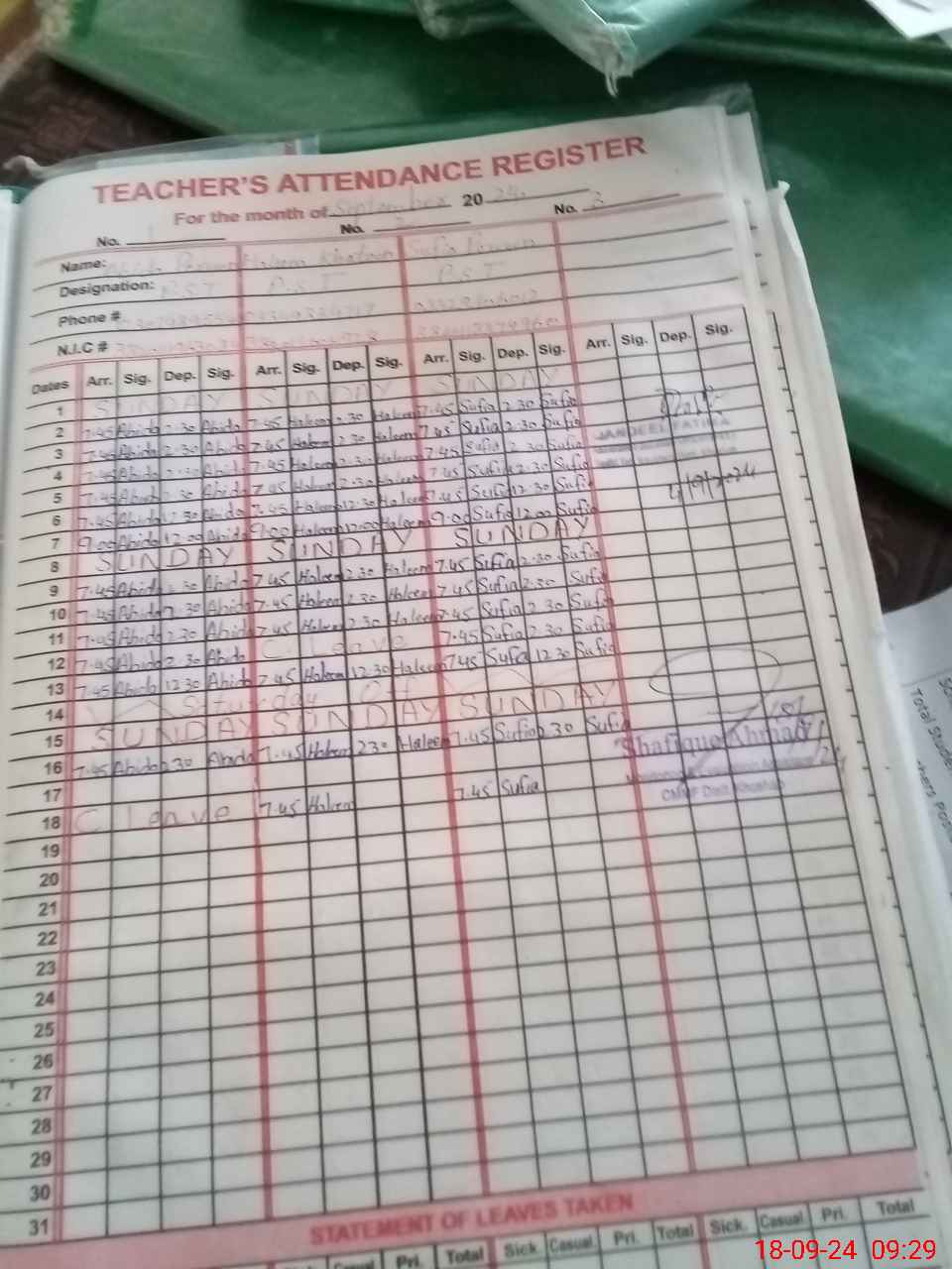 | Name: Ab**** Pe**** Designation: (School Headmaster's/Headmistress's) PST Phone/Cell Number: 03**** |