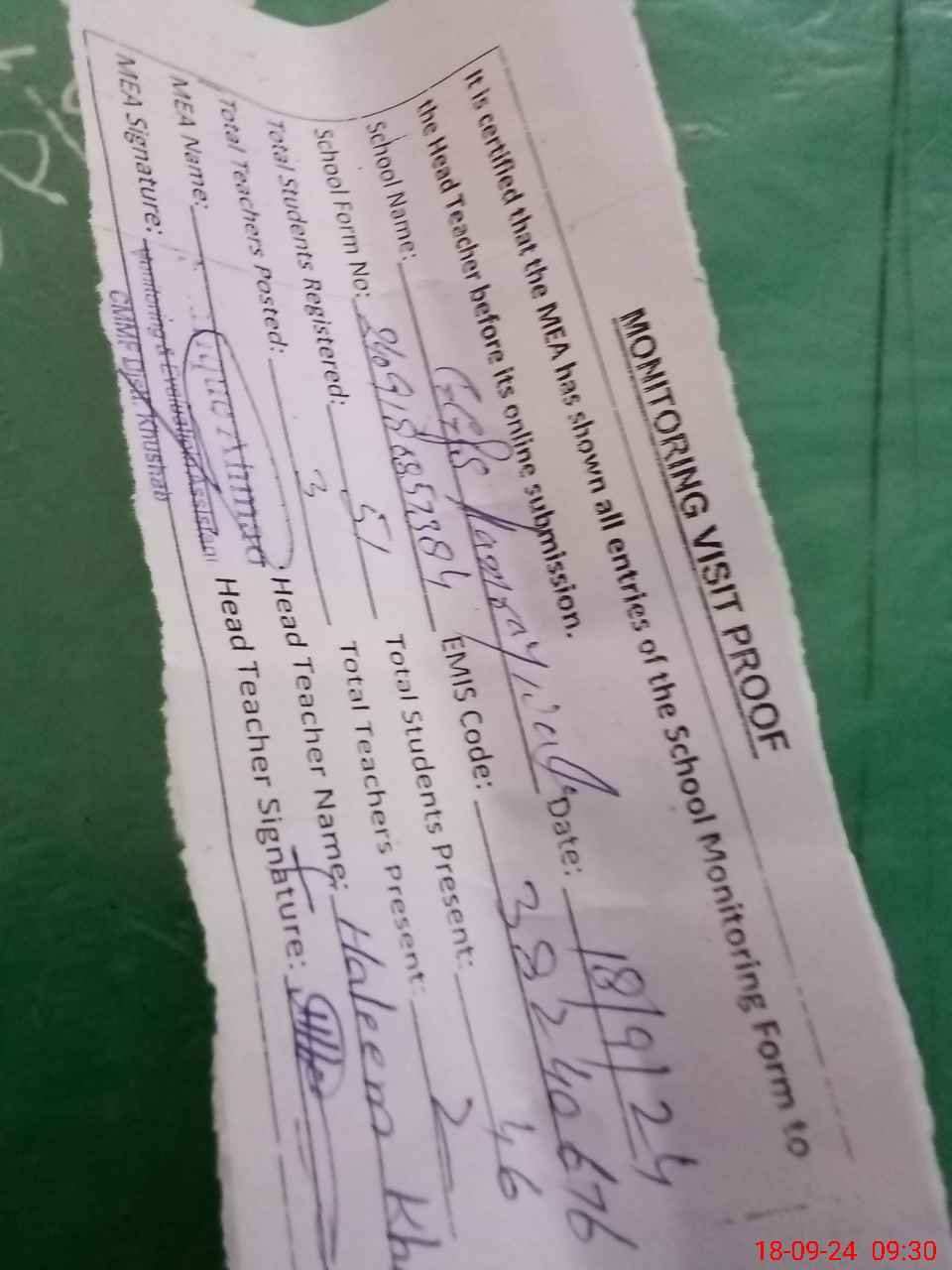 | EMIS Code: 38240676 | Name of School: GGPS KAMRAY WALA | |||