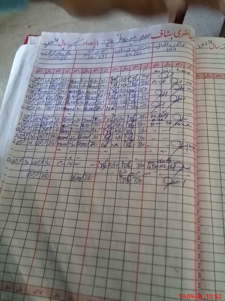 | CNIC | Full Name | Designation | R/C | Absence During Last Calender Month |