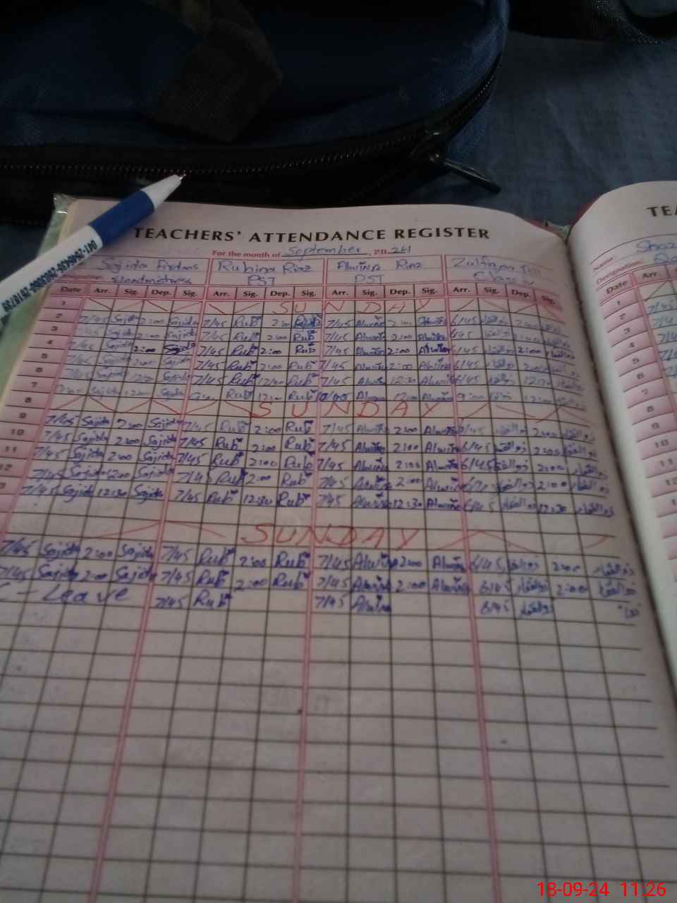 | Leave | Duty | Absent | Maternity | Medical | Ex- Pak |