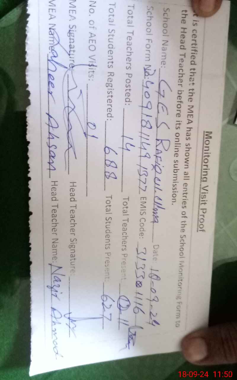 | EMIS Code: 31331116 | Name of School: GES MC RAFIQ-UL-ULMA | |||