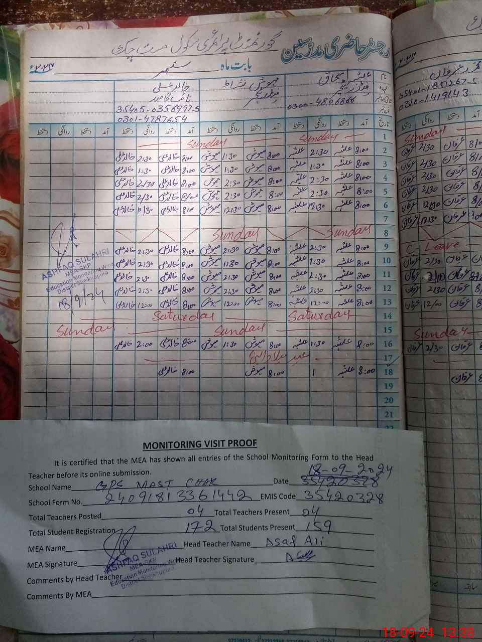 | EMIS Code: 35420328 | Name of School: GPS MAST CHAK | |||