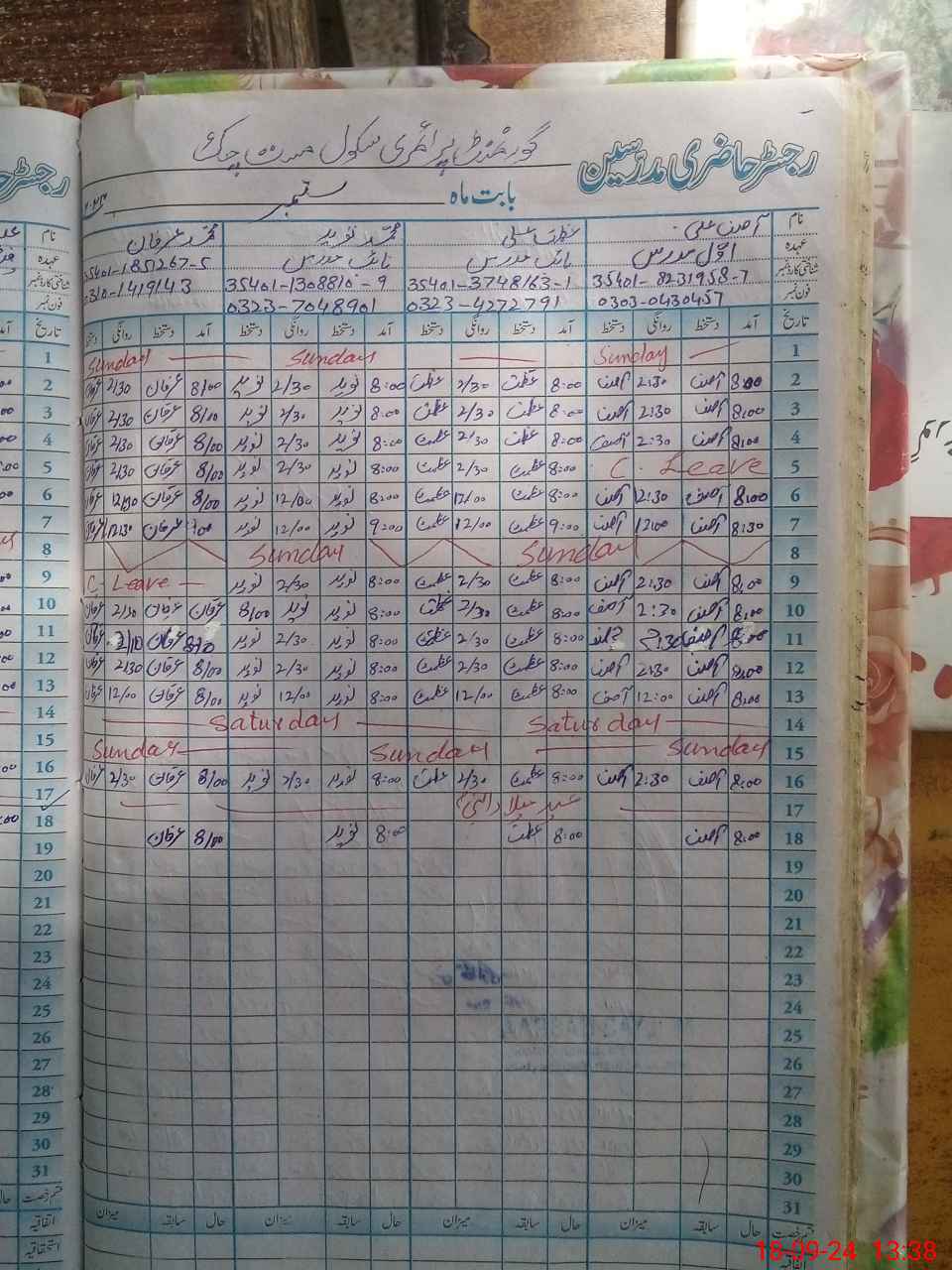 | Name: AS**** AL**** Designation: (School Headmaster's/Headmistress's) ESE Phone/Cell Number: 03**** |