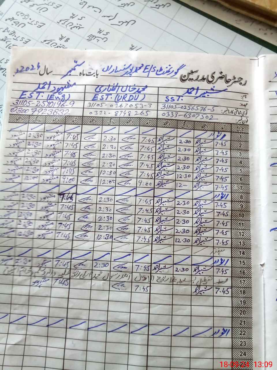 | Name: SH**** AH**** Designation: (School Headmaster's/Headmistress's) SST (G) Phone/Cell Number: 03**** |