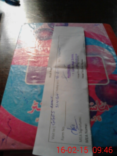 | Monitoring Date: 16-02-2015 | Start Time: 16-02-2015 09:28 AM | End Time: 16-02-2015 09:47 AM | Name of MEA: YO**** AL**** SH**** | |