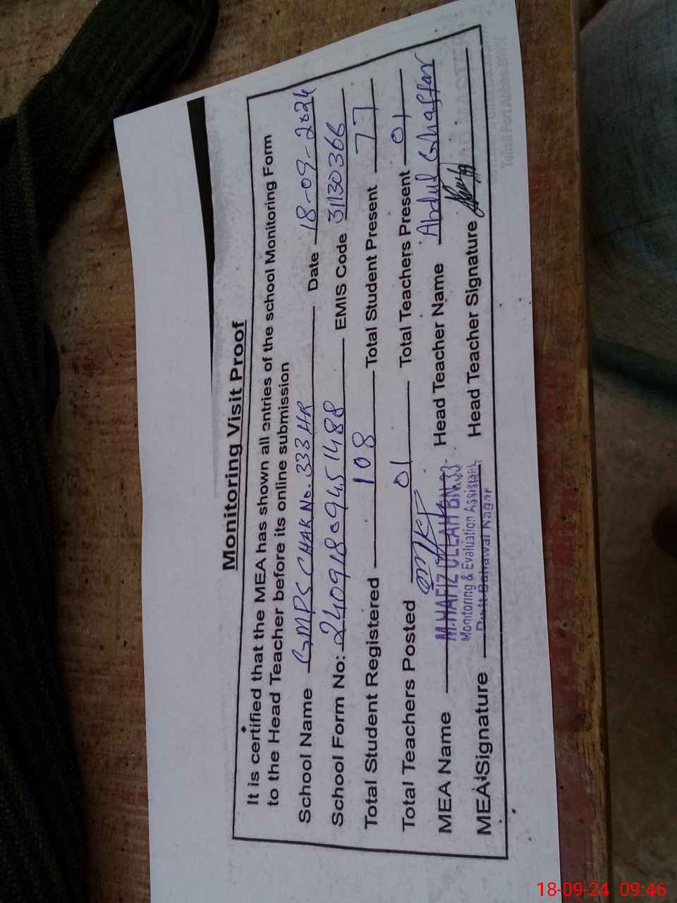 | EMIS Code: 31130366 | Name of School: GMPS CHAK NO 333 HR | |||