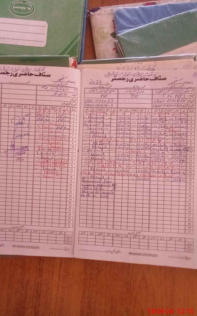 | Name: PE**** AK**** SH**** Designation: (School Headmaster's/Headmistress's) PST Phone/Cell Number: 03**** |
