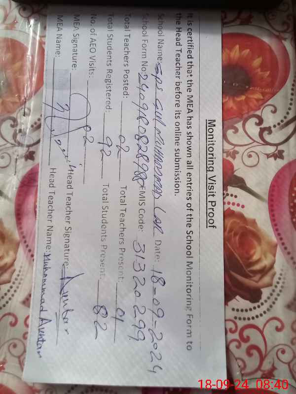 | Attendance Register | Head Teacher | MEA with School | Visit Proof |
