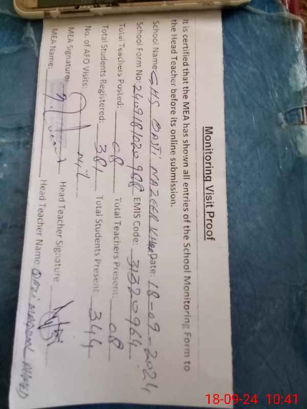 | EMIS Code: 31320964 | Name of School: GHS BASTI NAZIR KHAN | |||
