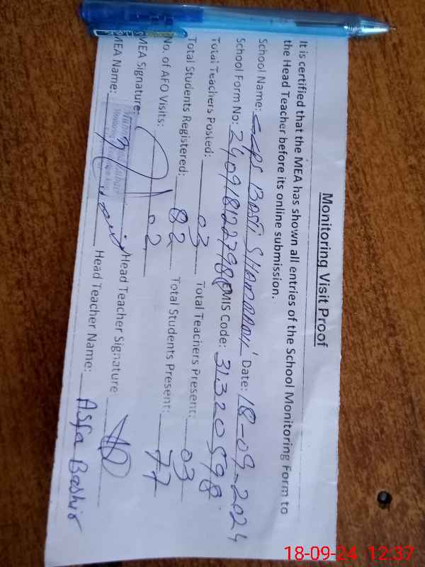 | Name: As**** Ba**** Designation: (School Headmaster's/Headmistress's) PST Phone/Cell Number: 03**** |