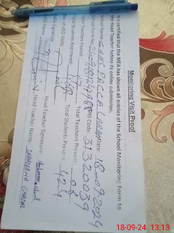 | EMIS Code: 31320039 | Name of School: GGHS PACCA LARAN | |||