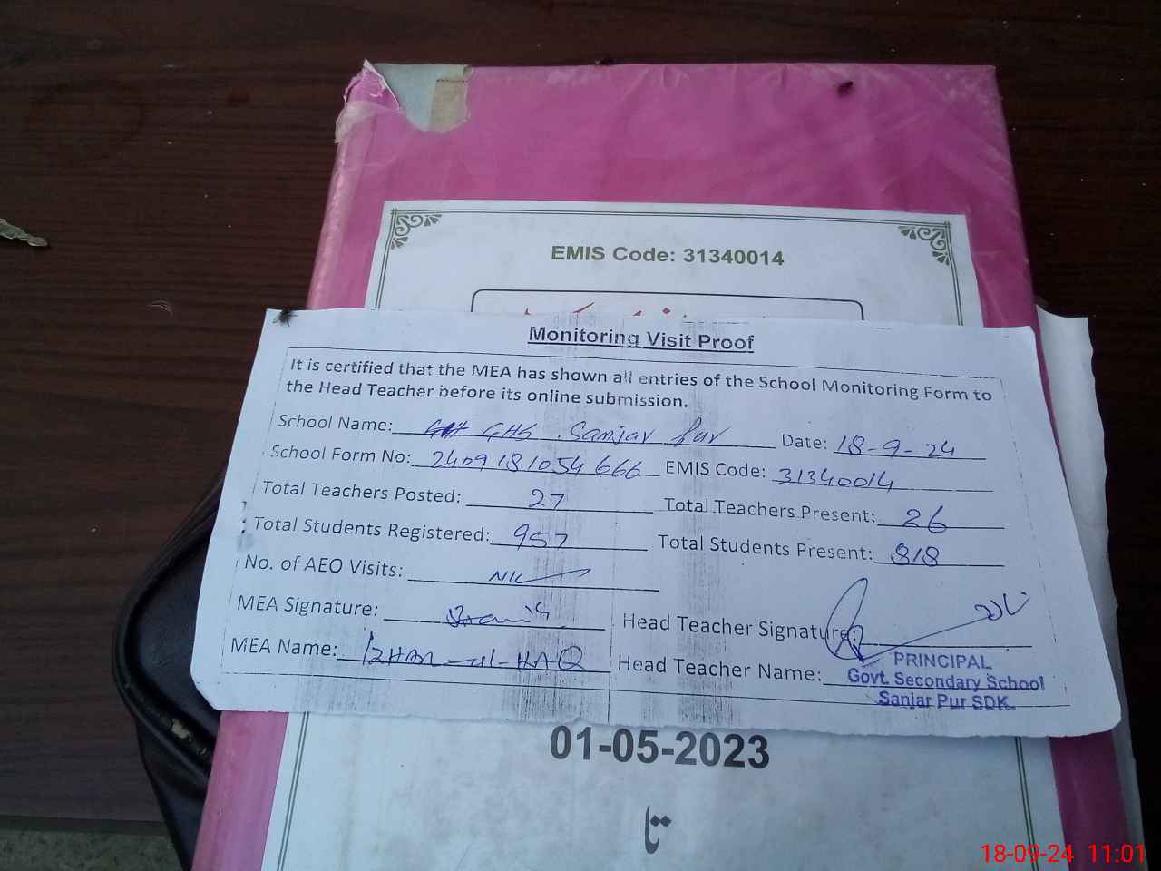 | EMIS Code: 31340014 | Name of School: GHS SANJAR PUR | |||