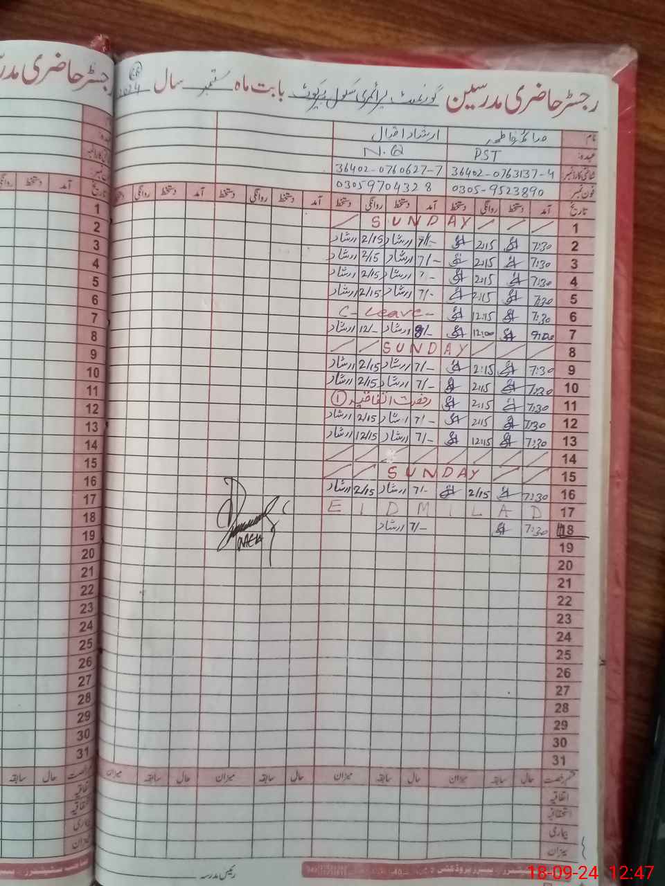| Name: Mu**** Ze**** Designation: (School Headmaster's/Headmistress's) PST Phone/Cell Number: 03**** |