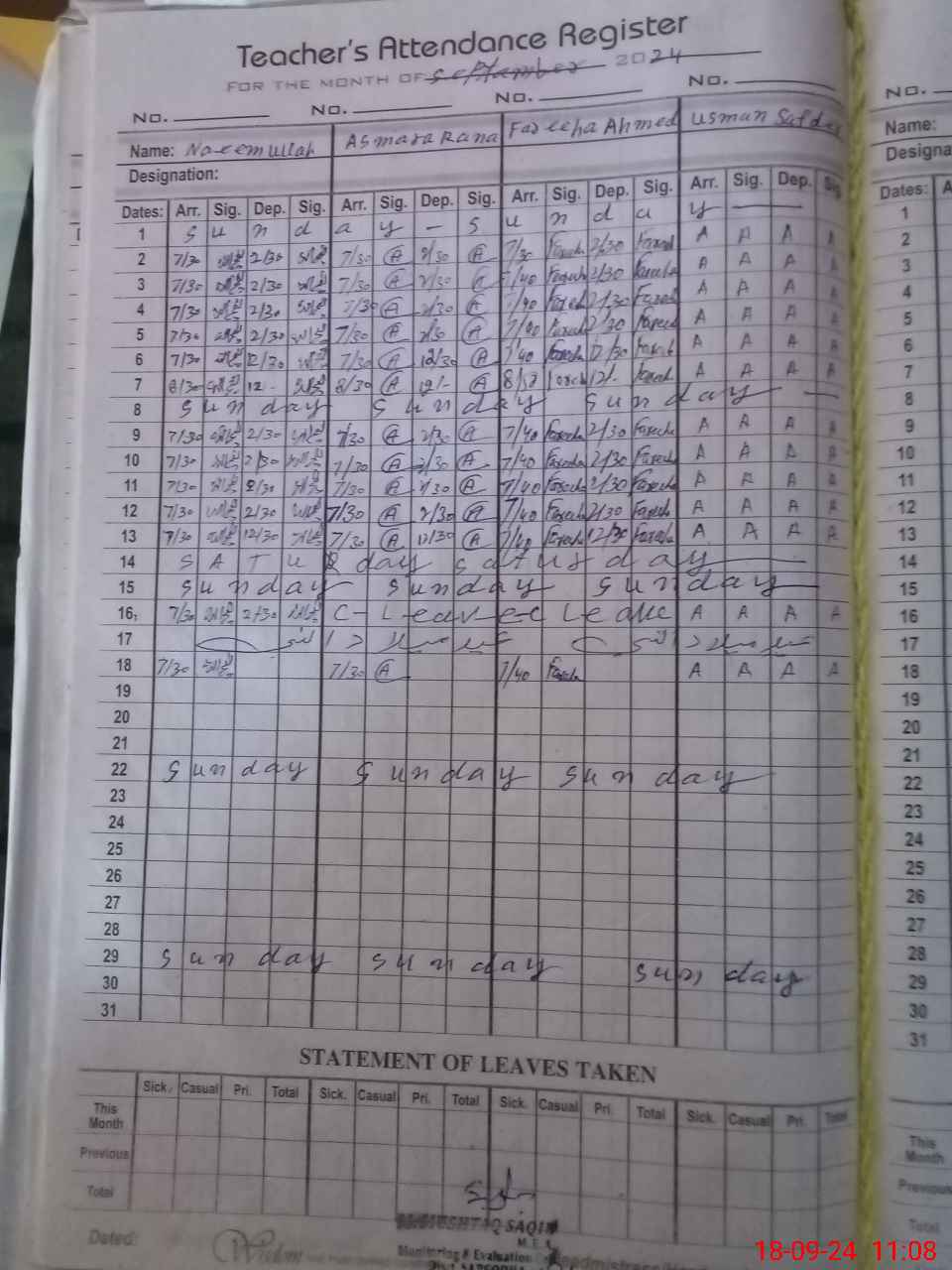 | CNIC | Full Name | Designation | R/C | Absence During Last Calender Month |