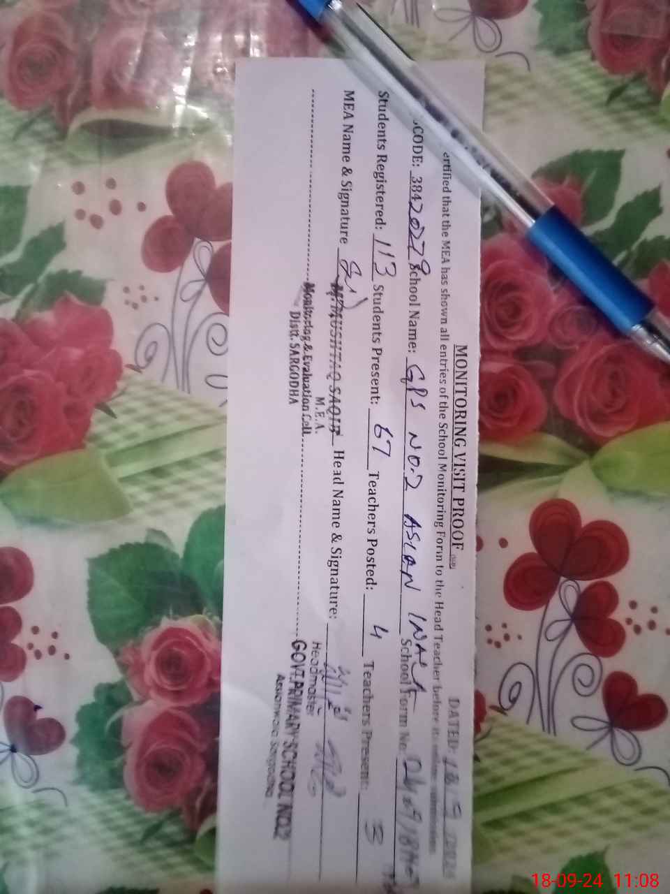 | Attendance Register | Head Teacher | MEA with School | Visit Proof |