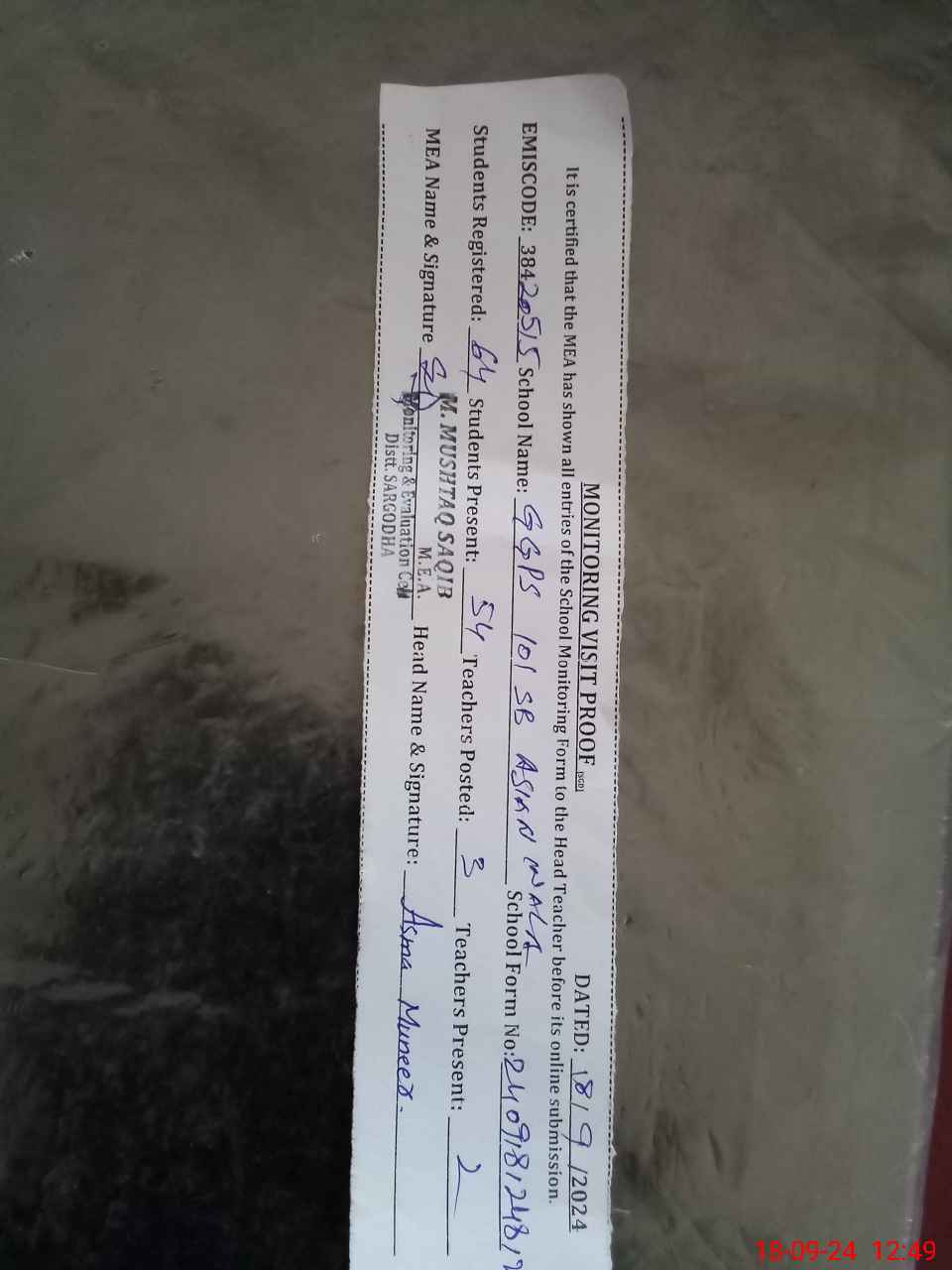 | EMIS Code: 38420515 | Name of School: GGPS CHAK NO.101 ASSIAN WALA BADLA | |||