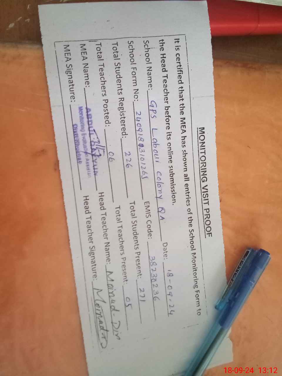 | EMIS Code: 38230236 | Name of School: GPS LABOUR COLONY | |||