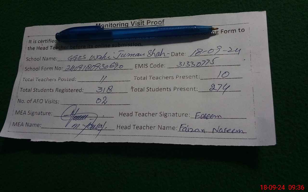 | EMIS Code: 31330775 | Name of School: GGES WAHI JUMAN SHAH | |||